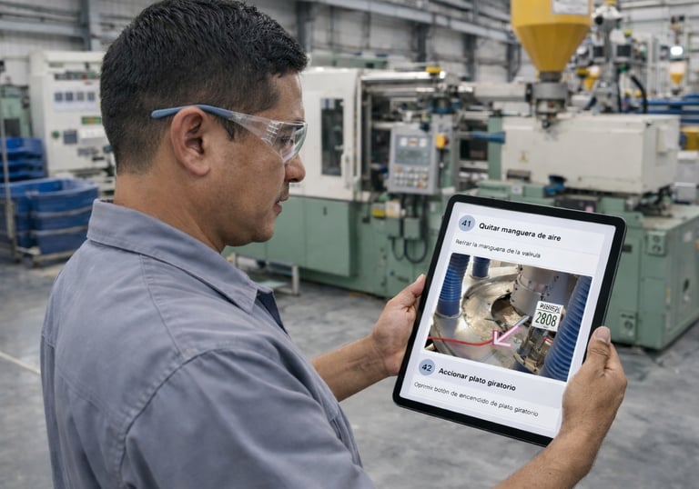 Nos encargamos de todo el proceso: analizamos tus procedimientos actuales, los documentamos y los convertimos en flujos digitales visuales listos para usarse en planta.